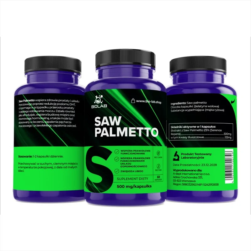 Apueste por un extracto natural que puede facilitar el bienestar fisiológico y apoyar a su cuerpo en los retos diarios. Elija Saw Palmetto como parte del cuidado consciente de su forma física y de su salud masculina. Recuerde que la suplementación complementa una dieta variada. Cualquier síntoma urinario o endocrino preocupante debe ser consultado con su médico para un diagnóstico adecuado y un apoyo óptimo a su salud.