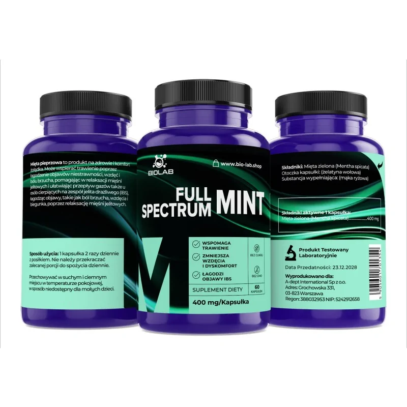 Ingredientes: mentha spicata, cápsula de gelatina, harina de arroz