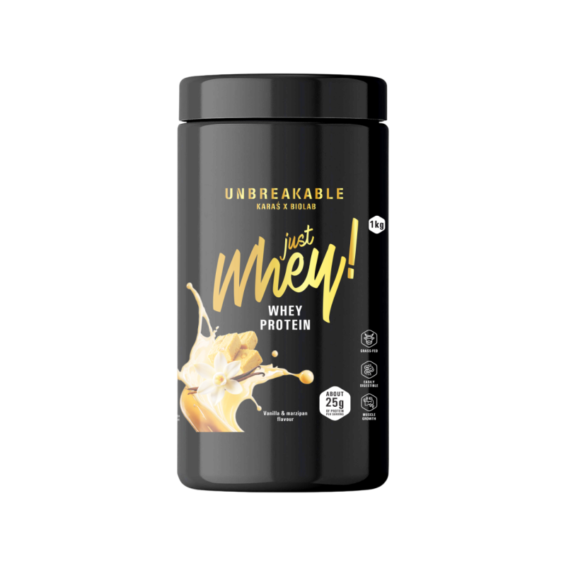 ¿Quieres notar la diferencia y apoyar tu salud al máximo nivel? Elige Just Whey! Mazapán Vainilla de la línea UNBREAKABLE Karaś x Biolab. Es un estándar que no acepta medias tintas. Elige Just Whey! y siente la diferencia que aporta la calidad Nutri Whey™.